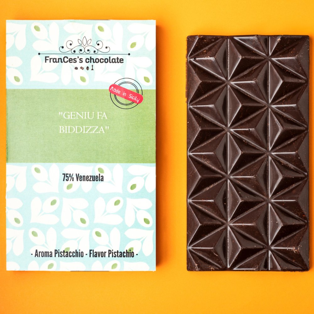 Cioccolato fondente con pasta di pistacchio.