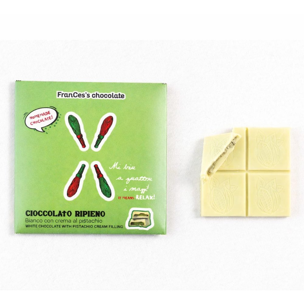 Tavoletta ripiena con crema al pistacchio.