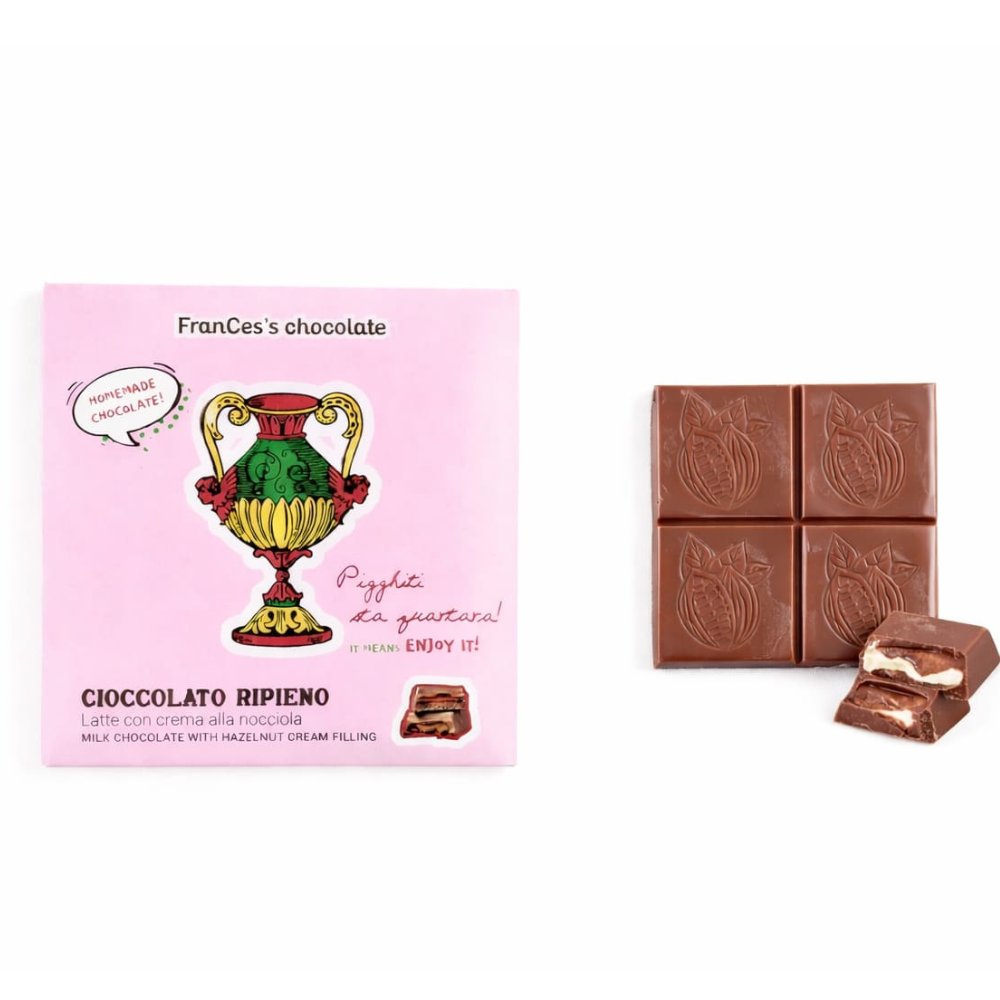 La tavoletta ripiena è un formato pocket e molto goloso: una classica tavoletta al cioccolato al latte ma ripiena di crema alla nocciola.